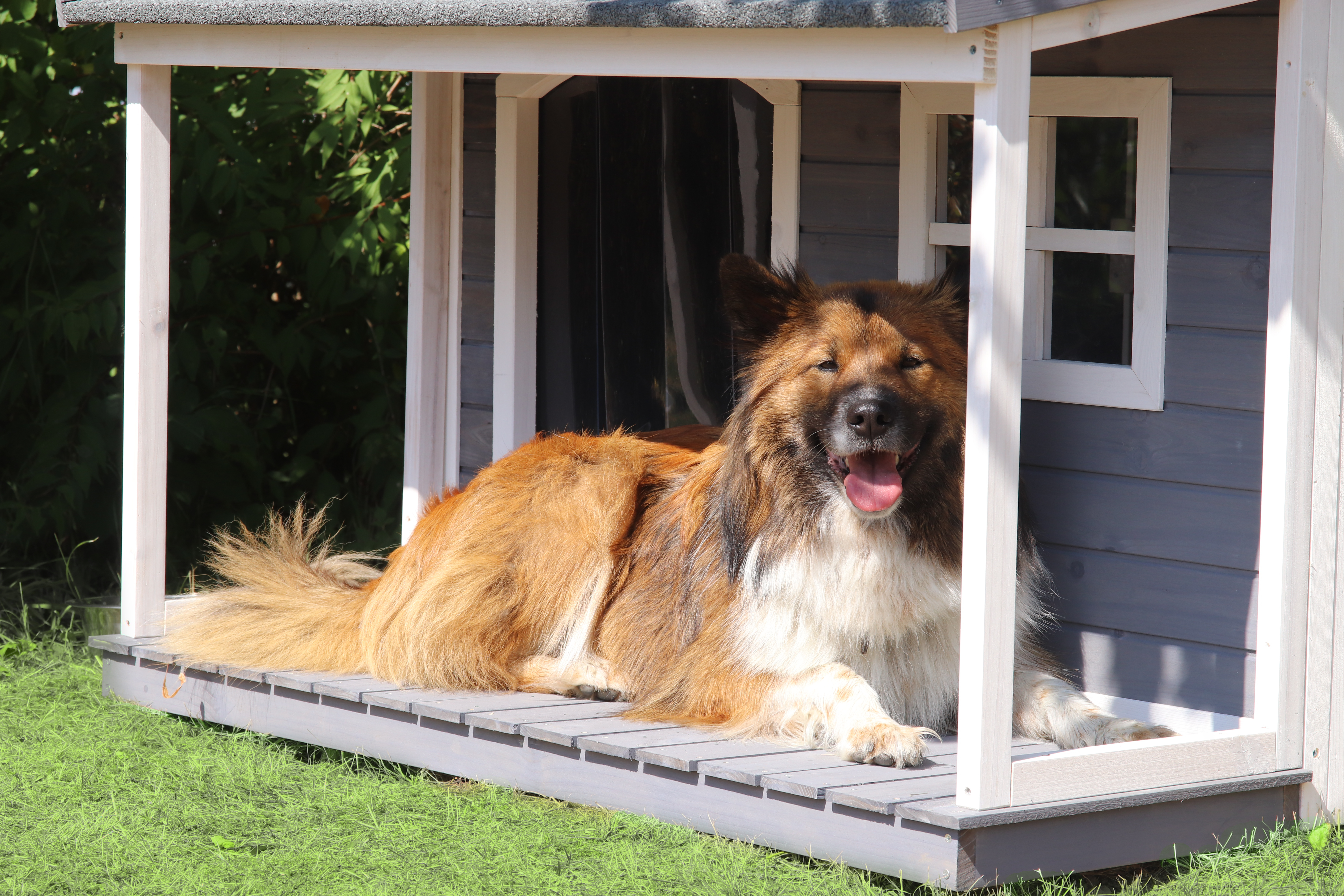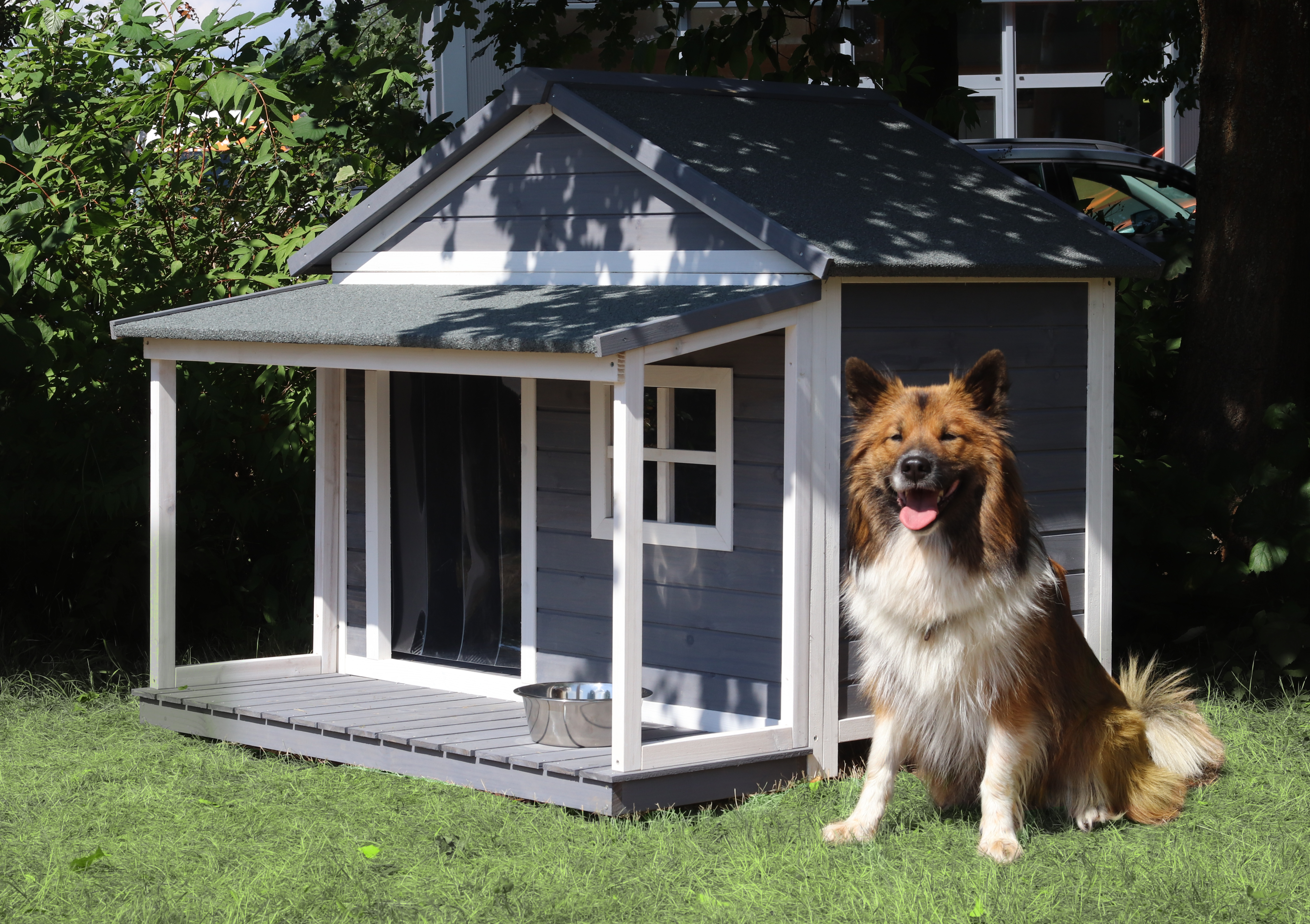 Luxus-Hundehaus: Hundevilla mit Vordach und Terrasse